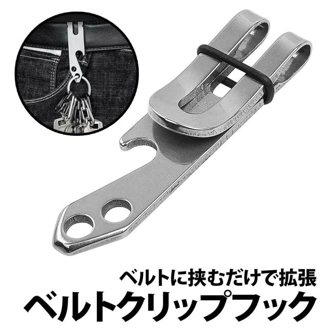 50%offクーポン有 ベルトクリップ フック 1個 ステンレス クリップフック アウトドア サバイバル キャンプ ベルト ボトムス ズボン アンダー 鍵 クリップ 工具 マルチツール ワンタッチ 装着 吊り下げ 栓抜き マネークリップ ステンレスクリップ キーリング キーチェーン
