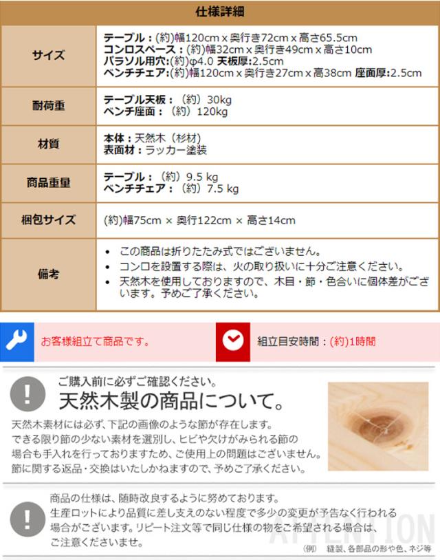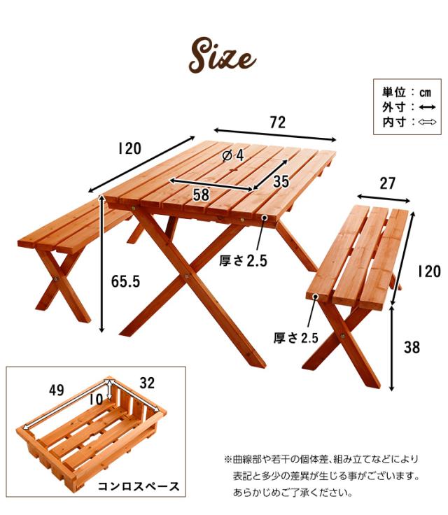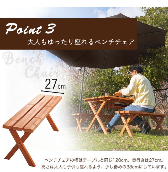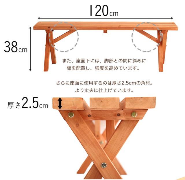 ベンチチェア:W120 x D27 x H38cm 座面厚:2.5cm