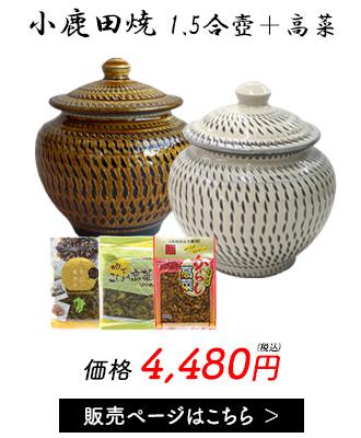 小鹿田焼 1.5合壺と九州産 高菜漬け 3種のセット
