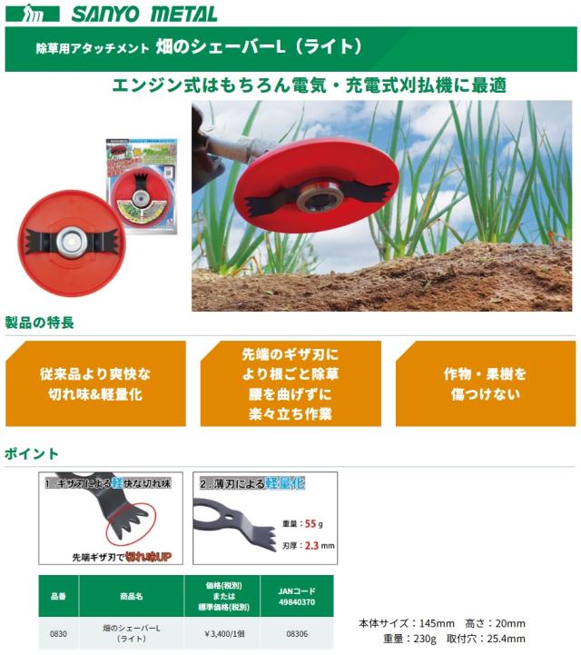 三陽金属 0830 畑のシェーバーL(ライト) 除草用アタッチメント 本体サイズ145mm SANYO METAL ネコポス可 在庫