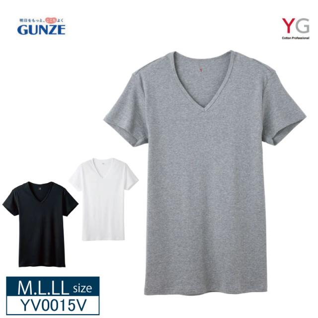 10%OFF!【GUNZE】 グンゼ YG 半袖シャツ Vネック ピュアコットン オールシーズン 定番 綿100% 抗菌防臭加工 脇縫いなし (M・L・LLサイズ)YV0015V