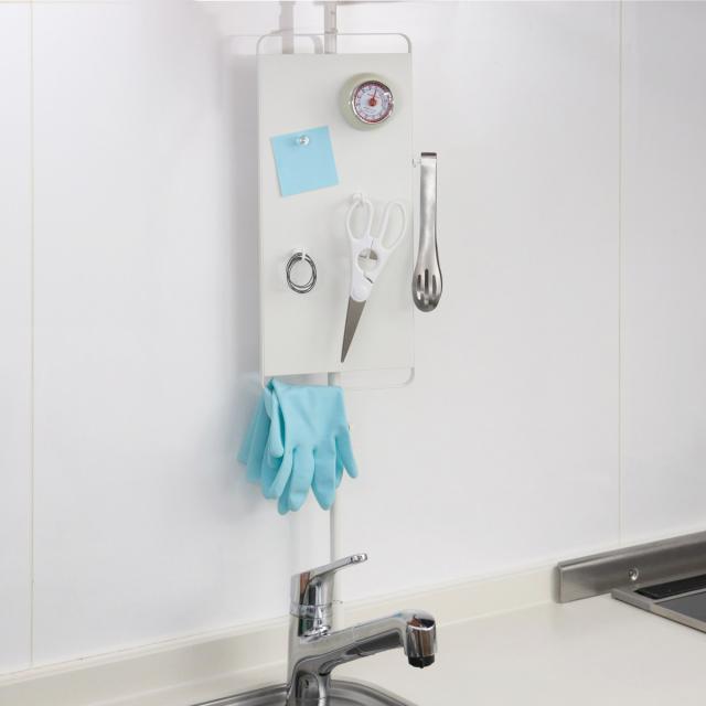 つっぱりラック キッチンつっぱりパネル マットホワイト ( つっぱり棒 突っ張りラック 突っ張り棒 つっぱり 突っ張り ラック キッチン 壁面収納 シンク上 シンク上収納 収納ラック シンク上ラック スチール マグネット収納 1本脚 )