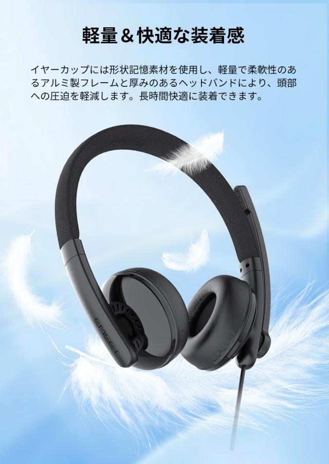 EMEET HS50 ヘッドセットは、クリアな音声通話と快適な装着感を追求したUSBヘッドセットです。ノイズキャンセリングマイクを搭載し、周囲の雑音を抑えてクリアな音声を届けるため、ビデオ会議やオンライン授業、コール業務にも最適です。