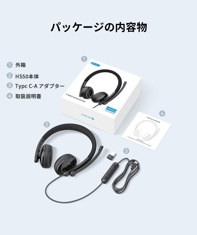 EMEET HS50 ヘッドセットは、リモートワーク、オンライン会議、Web授業、コールセンター業務など幅広いビジネスシーンで活躍する高性能USBヘッドセットです。通話品質の向上と快適な装着感を両立し、音声コミュニケーションをよりクリアで自然に行えるよう設計されています。