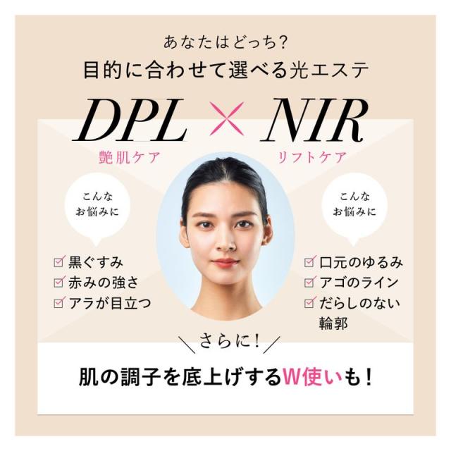 透明感を一気に加速する「DPL(艶肌ケア)」とナチュラルな上がり肌へと導く「NIR(リフトケア)」に加え、ハイパワー&肌へのやさしさを実現した「IPL(光脱毛)」。