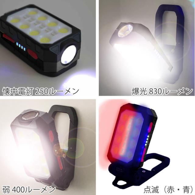 防災ライト マルチモード ワークライト カラビナ付き USB充電式 ( 照明 ライト 充電式 屋外 防災 アウトドア 吊り下げ 磁石付き 便利 停電 災害 懐中電灯 持ち運び 携帯 防災グッズ 角度調整 非常用 非常灯 )