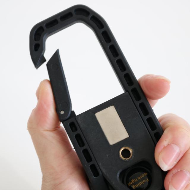 強力マグネットとカラビナ付きなので、様々な場所でお使いいただけます。カラビナは工具ポーチの幅広ベルトにも取り付けることができ、夜間の屋外での作業時に役立ちします。三脚に取り付けることができるネジ穴も付いており、幅広い使い方ができます。
