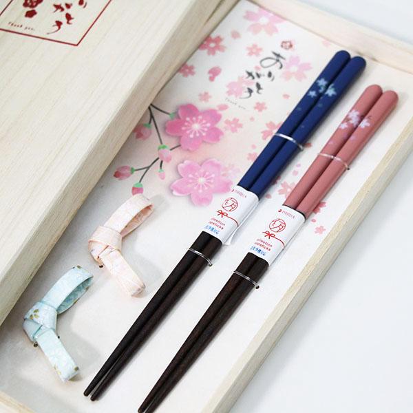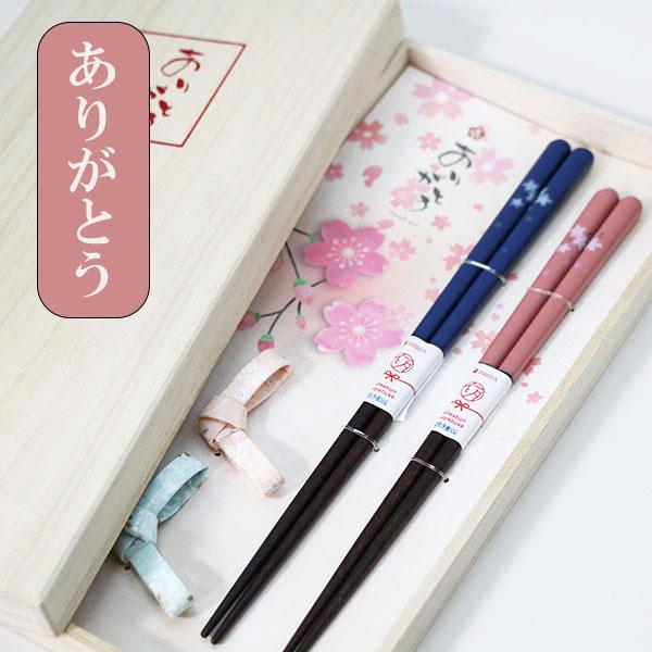 夫婦箸 箸置き セット ありがとう おはし お箸 箸 セット 桐箱 ペア めおと箸 木箱 桜 さくら 日本製 国産 ギフト プレゼント お祝い 御祝 男性 女性 父の日 母の日 両親 敬老の日 結婚祝い 還暦祝い 記念品