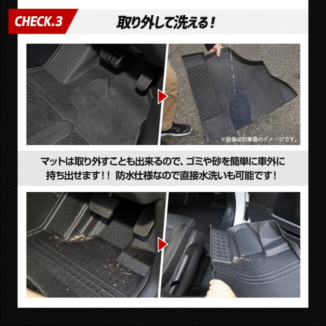 ・フロアをスキャンして製作しているのでピッタリフィット! ・付属のマジックテープで固定するので運転中にマットは全くズレません! ■純正マットの端から落ちるゴミや砂をガッチリガード!! ・隙間なくフィットするので、ゴミや砂が直接車両床に落ちることはありません。 ・3Dデザインなので縁の数センチの立ち上がりで水や汚れをしっかりキャッチ! ■完全防水なのでお手入れも簡単! ・水や汚れは軽いものならウエスなどで拭くだけでOK! ・全面的に汚れた場合は丸洗いも可能なので衛生的です。 ■新素材の熱可塑性エラストマー(TPE)を使用。 ・弾力があり、曲げたりすることも可能なので、お車からの取り外しも容易です。 ・ゴムのように車内が臭くなりません。 ・耐久性抜群なので何十万キロ走っても大丈夫です。 |