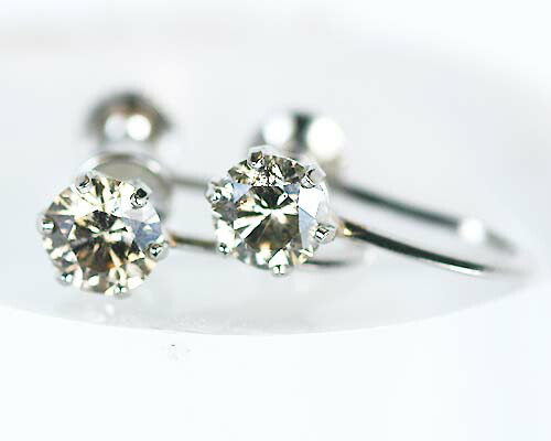 | - 香り高い大人の煌めき - ★ Pt 0.5ct ブラウンダヤイヤリング ★ | |||