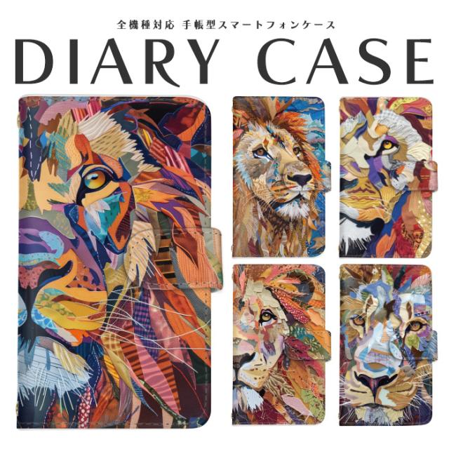 スマホケース 全機種対応 手帳型 iPhone 17 Air 16 e Pro Max Plus SE3 ケース iphone15 basio4 BASIO active2 Galaxy S24 Ultra arrows we Xperia 1V 10V 5V Android Pixel 9a OPPO A79 5G AQUOS sense8 キッズケータイ Libero 5G IV ライオン 生地風