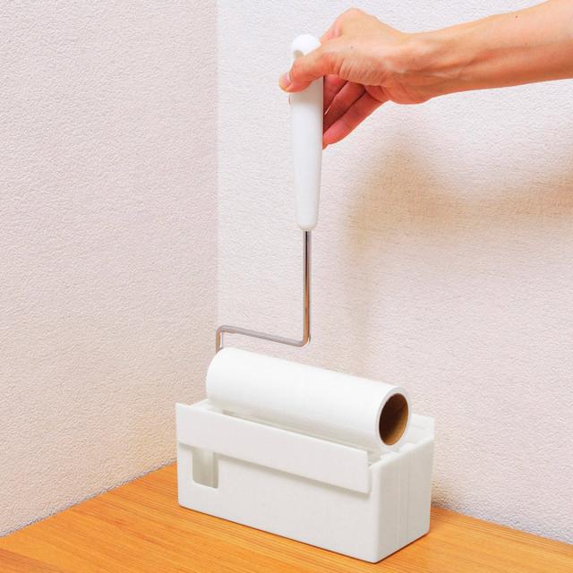 お手持ちの粘着ローラーをスッキリ収納できます。粘着ローラーを出し入れする動きに合わせて、フタが開閉します。片手でラクに出し入れできるので、思い立った時にすぐに使えます。