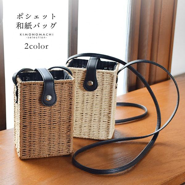 ポシェット 和紙バッグ 単品 「アイボリー・ナチュラルブラウン」ハンドバッグ かごバッグ カジュアル 女性 夏 浴衣 花火大会【メール便不可】