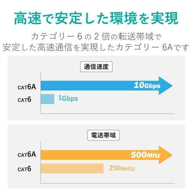周波数帯域500MHzを保証する10ギガビット・イーサネットに対応した、Cat6A対応LANケーブルの自作用長尺タイプです。専用の皮剥き工具とコネクターを使用することにより、LANケーブルを製作することができます。長い距離でも減衰の少ない単線ケーブルを採用しています。 ※コネクターは付属していません。