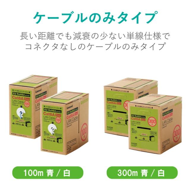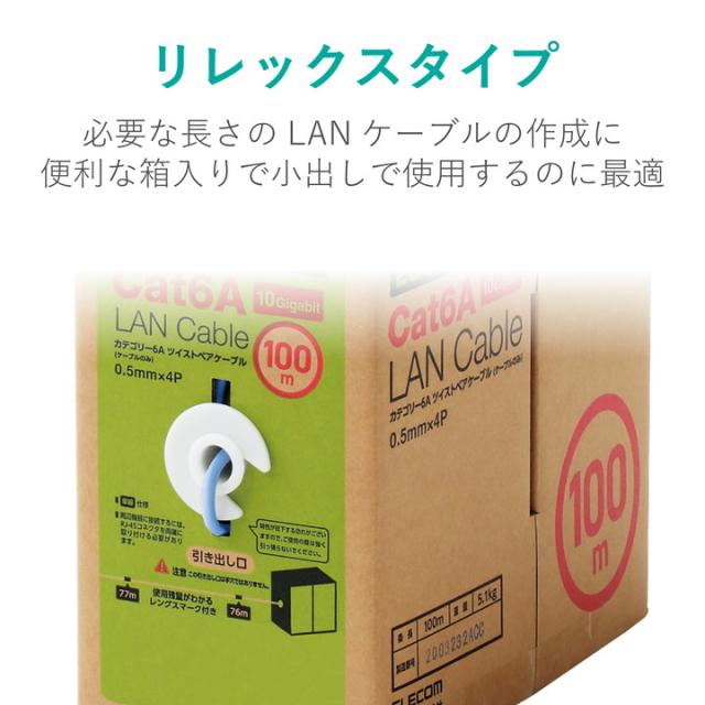 エレコム Cat6A準拠 LANケーブル 自作用 長尺 ランケーブル インターネットケーブル ケーブル EU RoHS指令準拠 コネクタ無し 単線 リレックス 100m ブルー┃ECLD-GPALB100RS