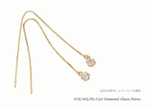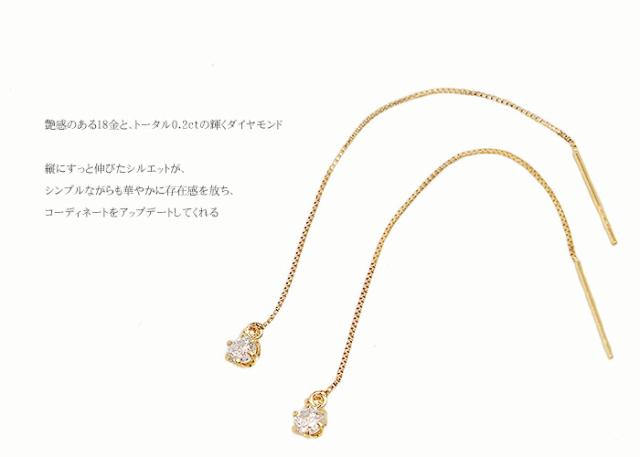 ピアス ダイヤモンド 0.2ct 18金 K18 一粒 1粒 ソリティア 6本爪 6爪 チェーン レディース アクセサリー ジュエリー ギフト ダイヤ 435748