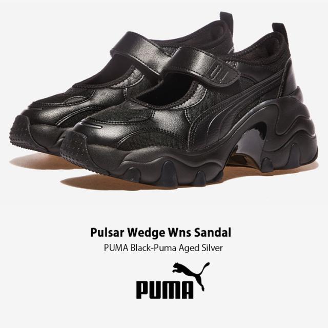 PUMA プーマ サンダル PULSAR WEDGE WNS SANDAL BLACK SILVER 398677-02 パルサー ウェッジ ウィーメンズ サンダル ブラック シルバー レディース 女性用