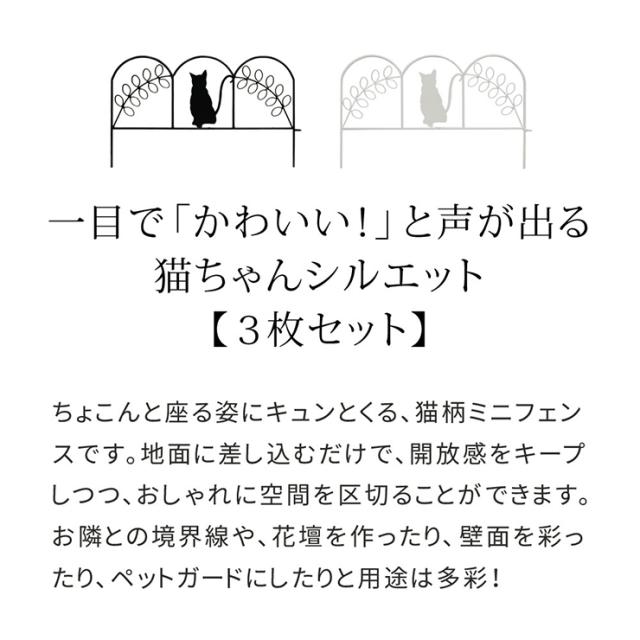 柵 おしゃれ アイアンフェンス ミニ 猫 3枚組 かわいい ガーデニング 園芸 花壇 ドッグラン 猫柄 ペットガード 素朴 プランター ベランダ 通気性 採光性 耐久性