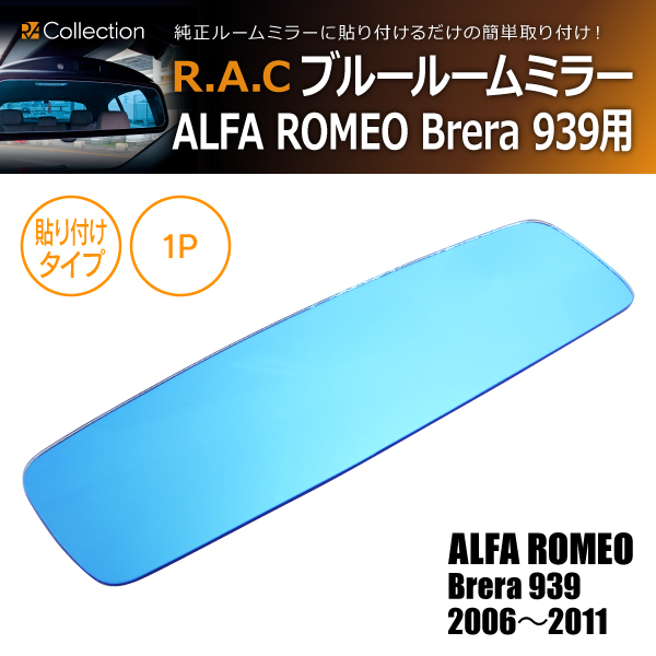 【在庫限】アルファロメオ ブレラ 939 2006-2011 R.A.C ワイドビューブルールームミラーレンズ 1P 貼り付けタイプ 自動防眩ミラー装備車用(商品コード:brm001)