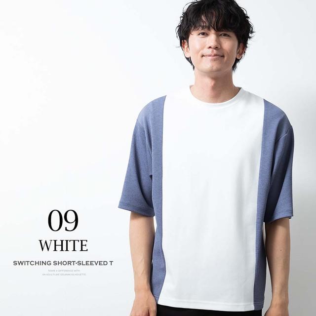 tシャツ 半袖 メンズ 接触冷感 切替 涼しい 切替デザイン おしゃれ 半袖tシャツ クルーネック 春 トップス デザインT カットソー メンズファッション 夏 爽やか バイカラー 白 半袖Tシャツ ギフト 春夏 無地