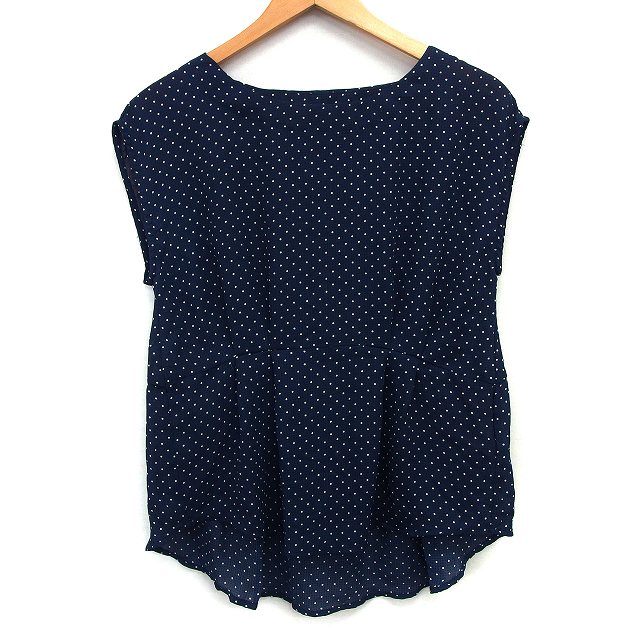 【中古】オゾック OZOC カットソー ブラウス シフォン ドット 柄 ペプラム タック ロングテール ノースリーブ 丸首 40