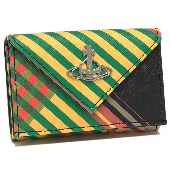 ●商品名:ヴィヴィアンウエストウッド 三つ折り財布 サフィアーノ ミニ財布 タータンチェック グリーン マルチカラー レディース VIVIENNE WESTWOOD 51150009U L0074 O102 SAFFIANO PRINT ENVELOPE BILLFOLD COMBAT TARTAN