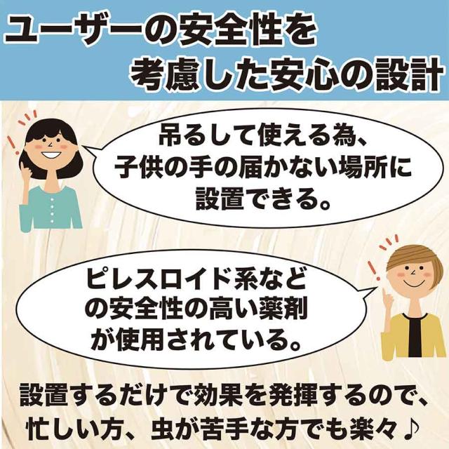 ・本品は吊るしたり、置いたりするだけの手軽な虫よけです。