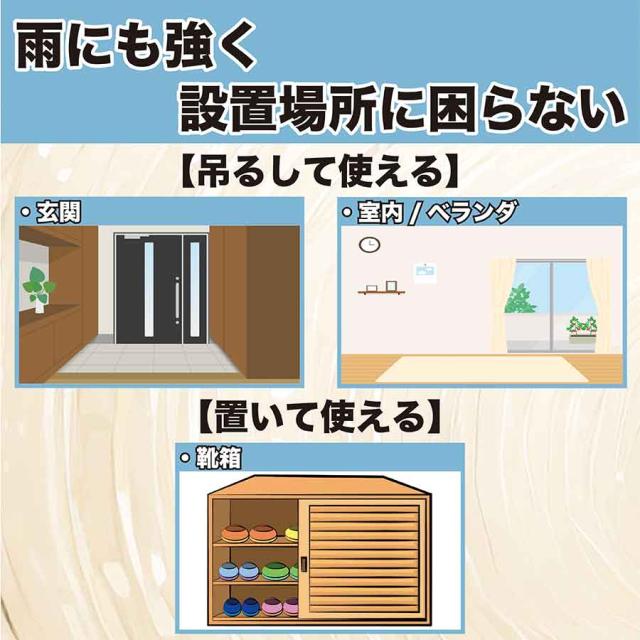 ベランダや窓、下駄箱に吊るす、置くだけ!