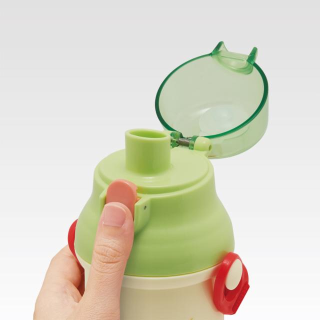 水筒の蓋はボタンを押すだけで開けることができるワンタッチ式です。飲み終わったら蓋をカチッと閉めるだけなので、小さなお子様でも簡単に開閉できます。