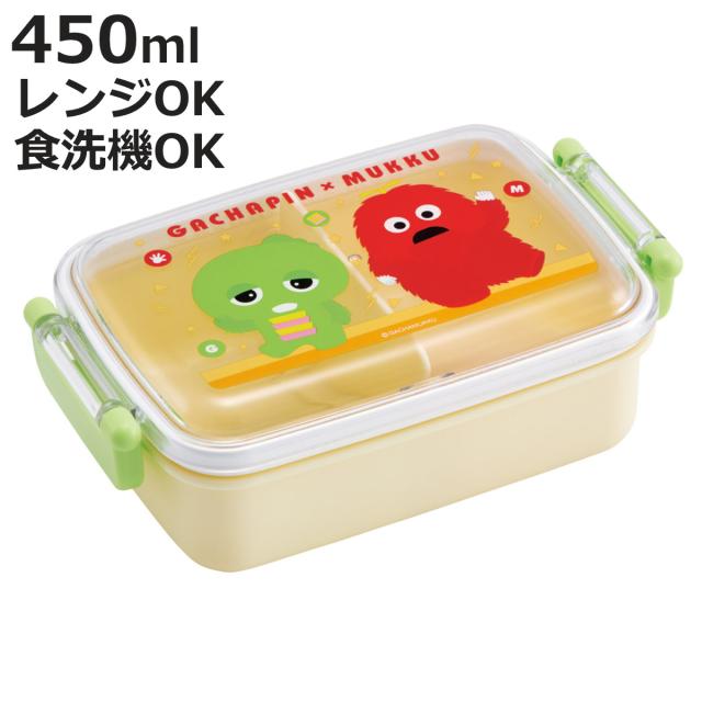 弁当箱 1段 450ml 抗菌ふわっとタイトランチ ガチャピンムック ( ランチボックス 食洗機対応 レンジ対応 抗菌 日本製 ドーム蓋 キッズ 食洗機OK レンジOK お弁当 弁当 一段 2点ロック 銀 AG )