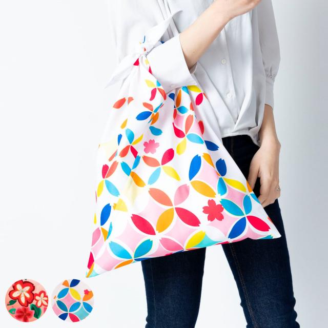 《 LH15841 京都プリント 京都 桜 さくら 手提げ袋 ふろしき 買い物 通勤 お出かけ レディース 大人 外国人 ギフト プレゼント 贈り物 誕生日 母の日 敬老の日 お買い物バッグ バック ショッピング 会社 仕事 移動 旅行 日常 人気 オススメ おすすめ スタイリッシュ 日本 京 花 》