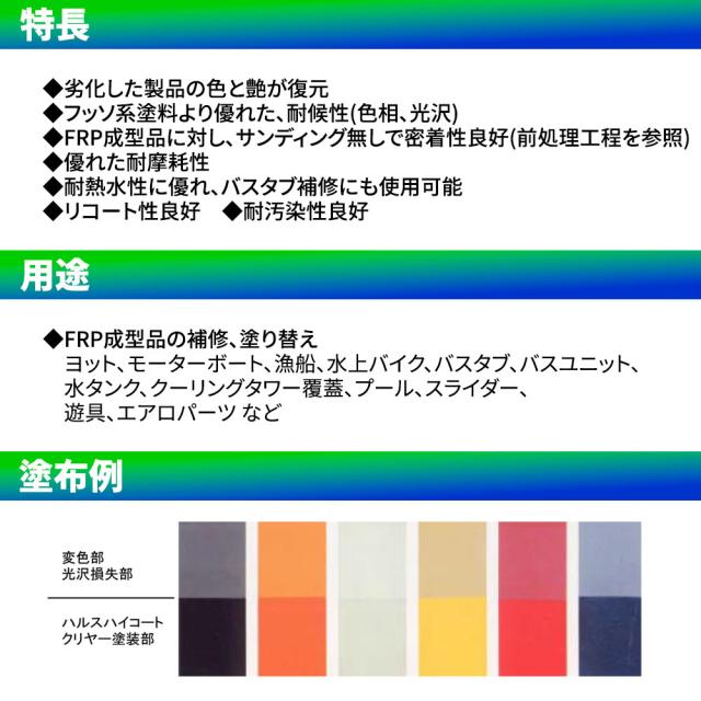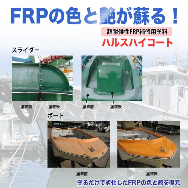 ハルスハイコートは劣化したFRP製品の色と艶が復元するFRP成形品の補修、塗り替えに使用します。
