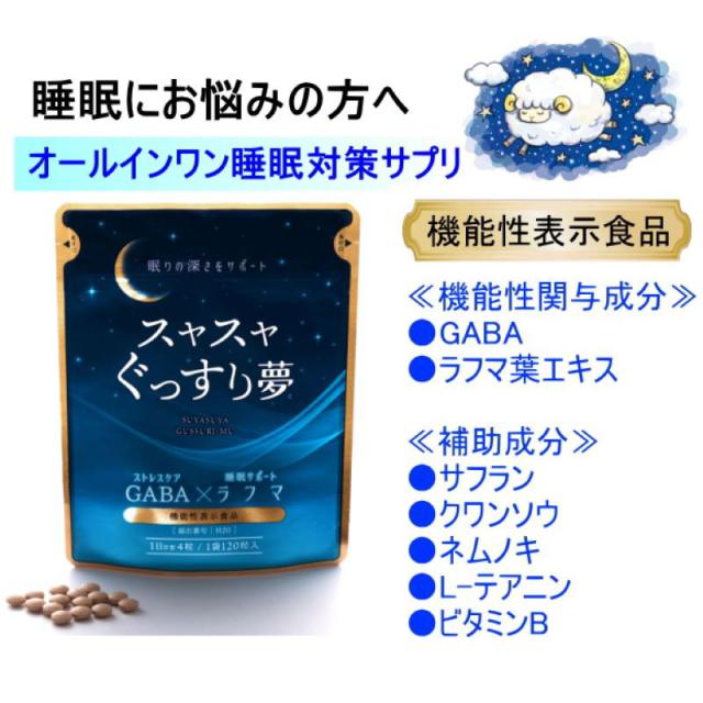 通常購入1袋 スヤスヤぐっすり夢 1袋120粒入 1日目安4粒 約30日分 睡眠対策 ラフマ葉エキスGABA 5つの補助成分を配合 国内製造