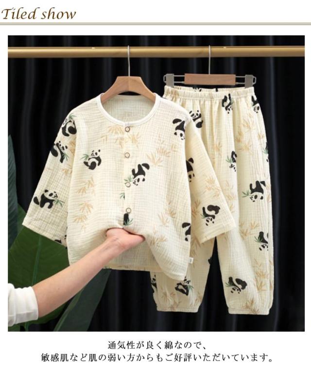 キッズ パジャマ 子供パジャマ 女の子 男の子 パンダ柄 七分袖 前開き ガーゼパジャマ 長袖 ベビー 夏 上下セット 薄手 ルームウェア 部屋着 セットアップ おしゃれ 可愛い 寝巻き ナイトウェア 80 90 100 110 送料無料