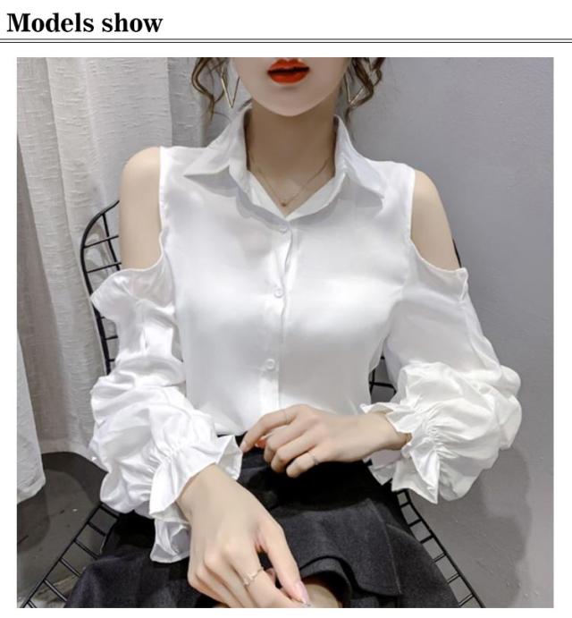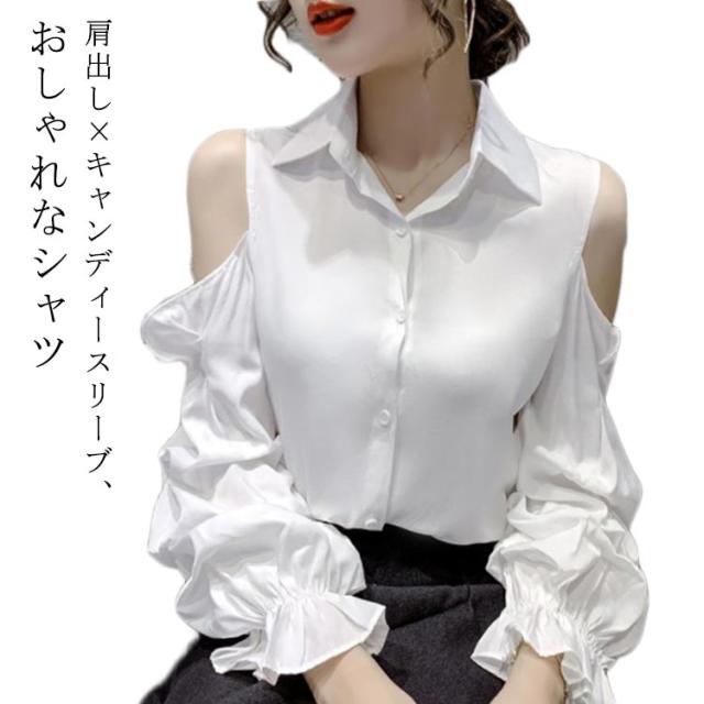 オフショルダー トップス レディース シャツ 肩見せ 肩出しトップス 長袖シャツ ブラウス シャツ 可愛い バルーンスリーブ ボリューム袖 着?せ 体型カバー カジュアルシャツ フェミニン おしゃれ 春 夏 秋 大人女子 長袖 ギフト プレゼント 送料無料