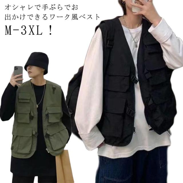| M-3XL!オシャレで手ぶらでお出かけできるワーク風ベスト 使いやすいポケットがたくさんあり、お散歩やお出かけする時スマホや鍵などを入れて超便利♪ ジップアップデザインも履き脱ぎ楽々で、釣り、アウトドア、お出かけに手ぶらで出かけられるお勧めのサマーベストです。 カットソーやシャツなどとのレイヤードコーデもスタイリッシュでお洒落決まり! | |