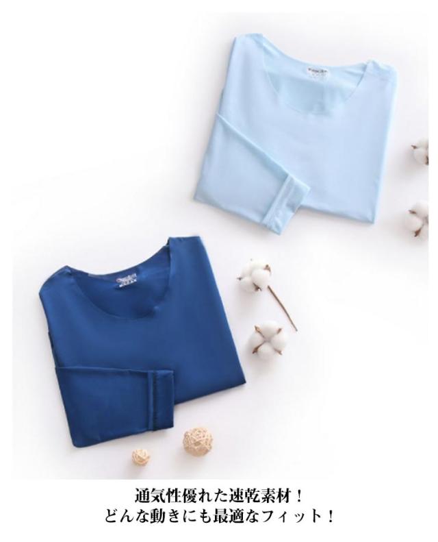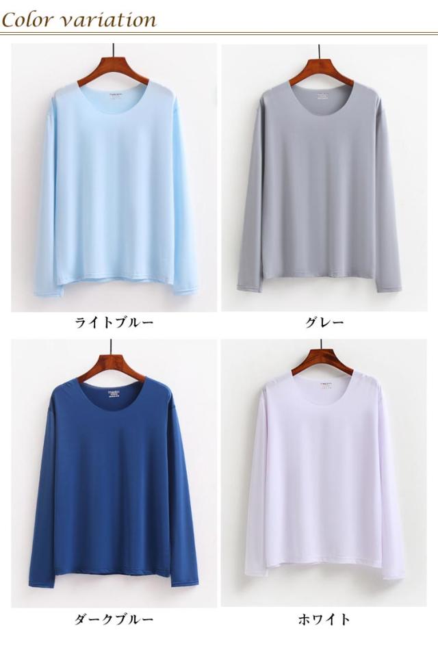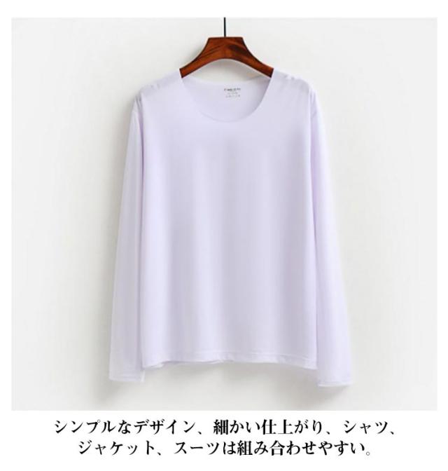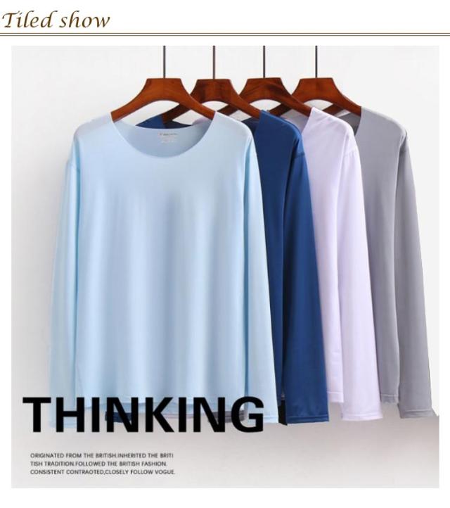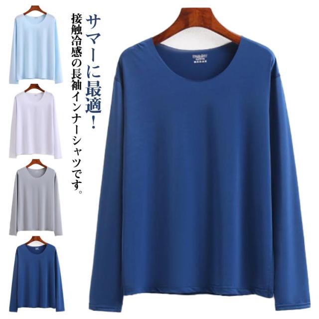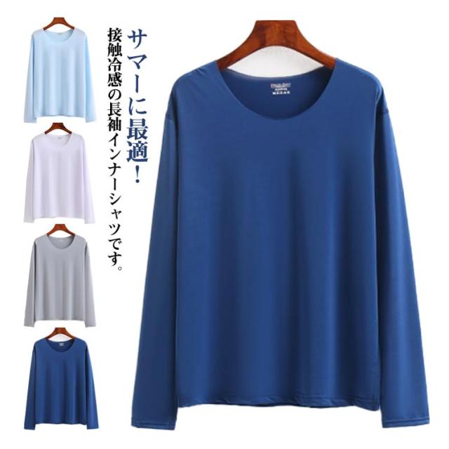 Tシャツ メンズ 長袖 アイスシルク ティーシャツ 夏 インナー クルーネック 涼しい 通気性 無地 速乾 柔らかい 快適 シンプル インナーシャツ 接触冷感 クール感 冷感 作業服 作業着 トレーニングウェア ゴルフ 野球 大きいサイズ バイク 釣り キャンプ 長袖tシャツ