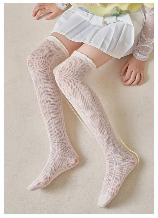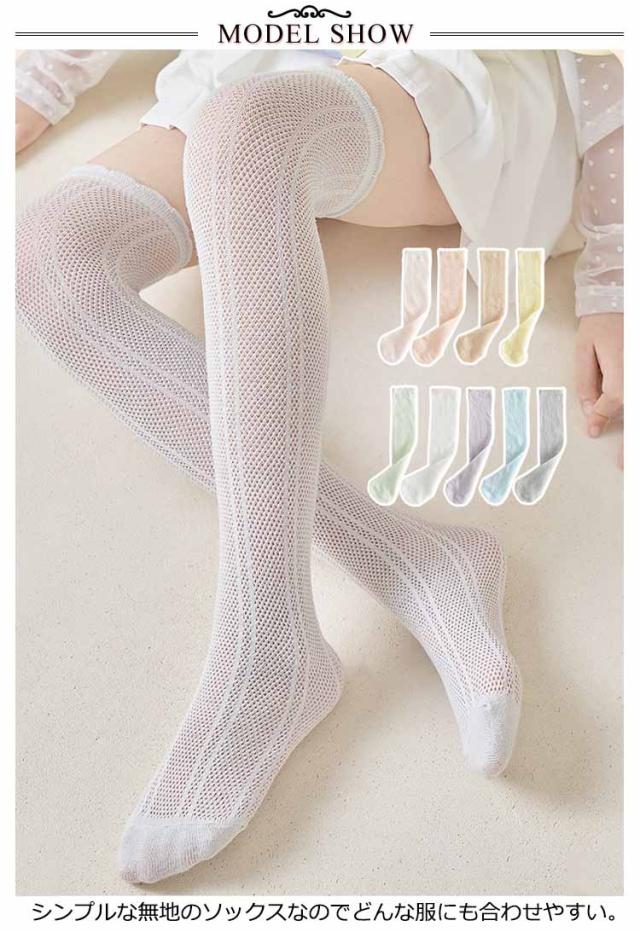 3足組 涼しい ハイソックス キッズ 夏 女の子 ニーハイソックス 薄手 靴下 メッシュハイソックス 膝上ハイソックス おしゃれ ソックス 蒸れない ジュニア 可愛い フリル M L