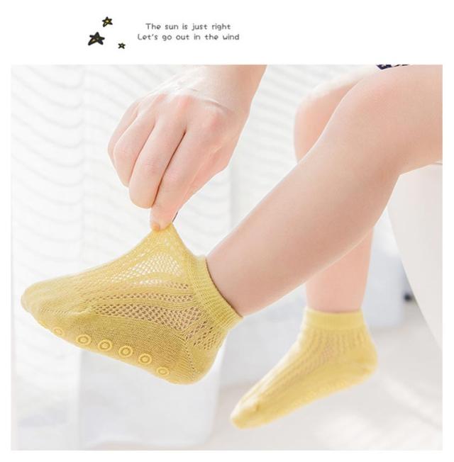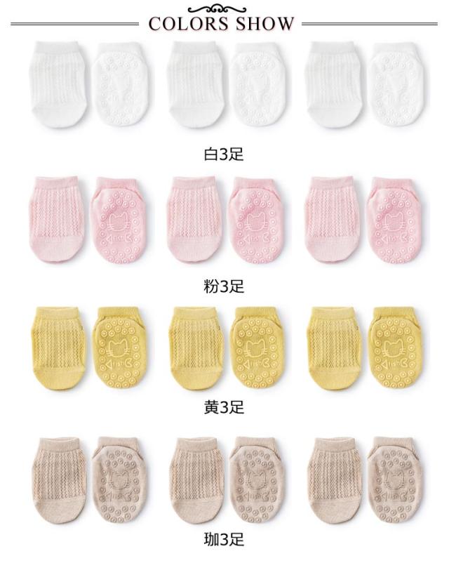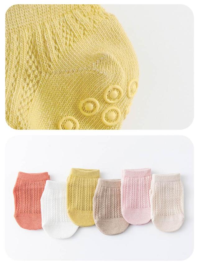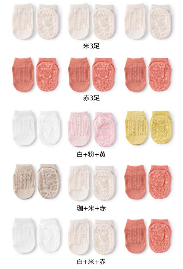 | 足裏にシリコン製の滑り止め、夏にぴったりベビーソックス3足セット! 通気性抜群なメッシュコットン素材で蒸れずに穿き心地よい。 夏場で快適に着用できます。 | |