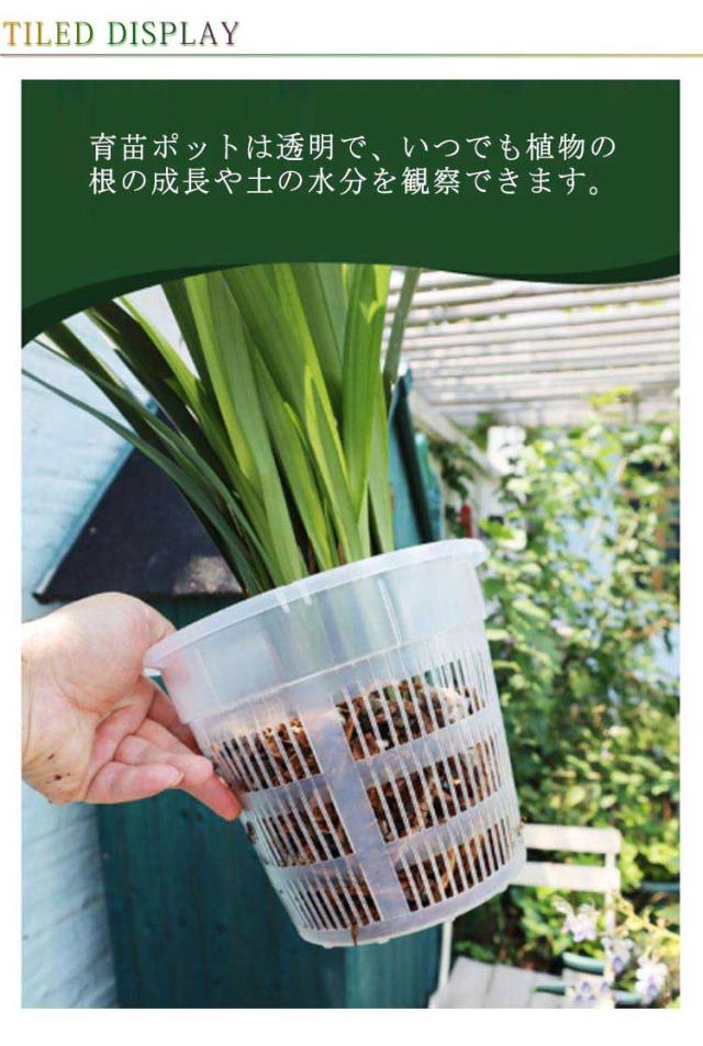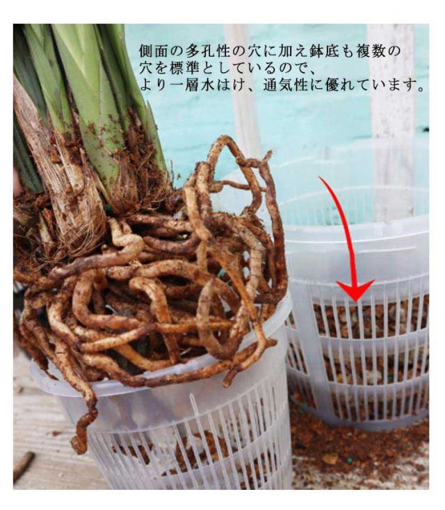 | 【胡蝶蘭専用植木鉢 5鉢セット】 【水がよく抜ける多穴型】 育苗ポットは透明で、いつでも植物の根の成長や土の水分を観察できます。 厚くて丈夫で、落としても簡単に壊れたり変形したりしません。植え替え用蘭鉢はお手入れ簡単で繰り返し使えます。 側面の多孔性の穴に加え鉢底も複数の穴を標準としているので、より一層水はけ、通気性に優れています。 胡蝶蘭だけでなく、多肉植物、果樹、植木栽培にもお勧め! | |