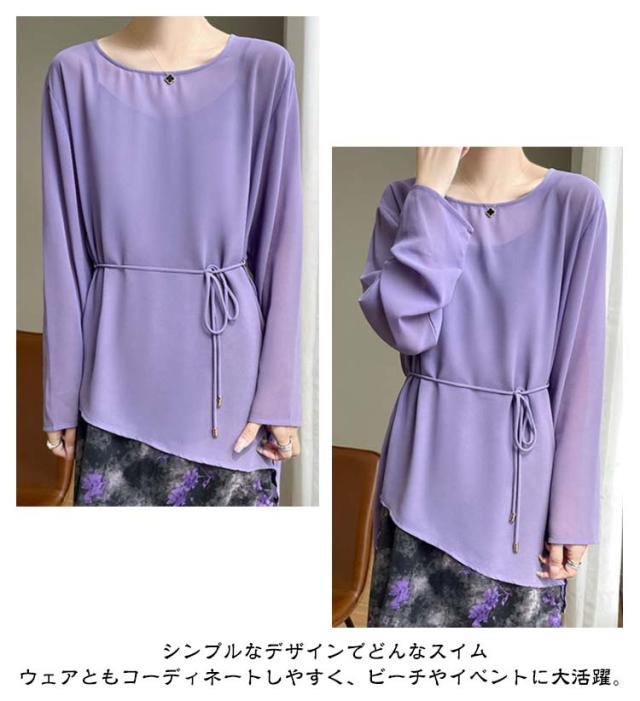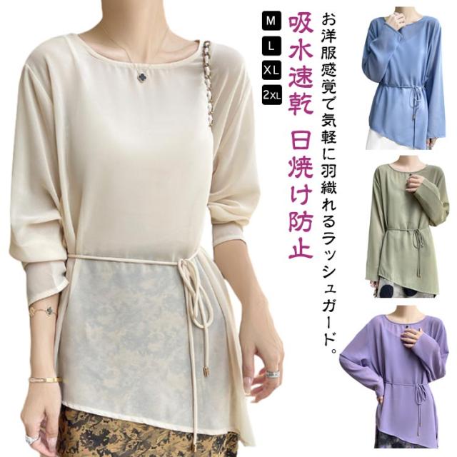 ラッシュガード レディース チュニック プルオーバー 長袖 海 水着 吸水速乾 日焼け防止 アクティブウェア ラッシュチュニック ベルト付き 体型カバー キレイめ お洒落 レイヤード風 エレガント 通勤 普段着 送料無料