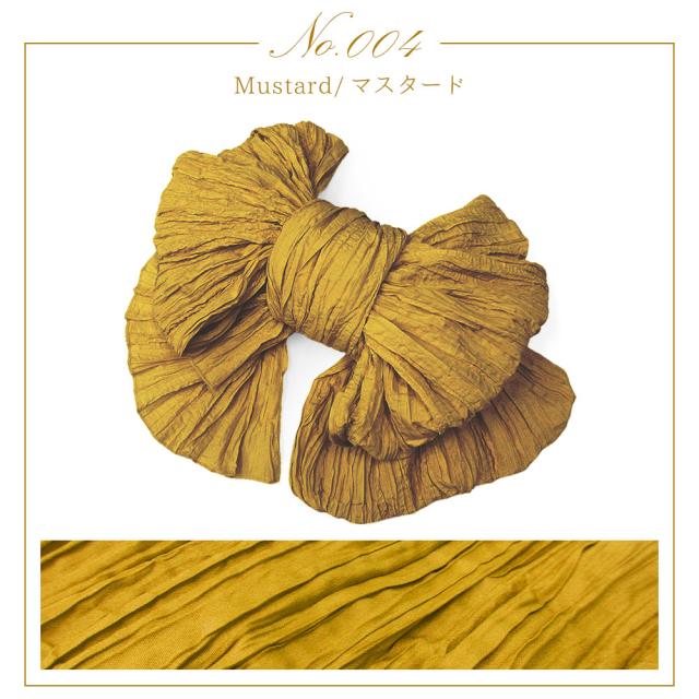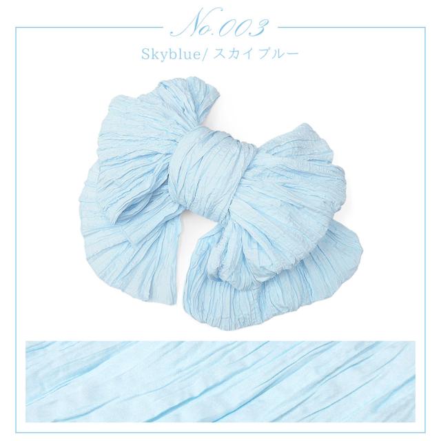 ふんわり柔らかで、ほどよいシャリ感のあるポリエステル100%生地に、シワ加工を施したボリュームのある兵児帯です。