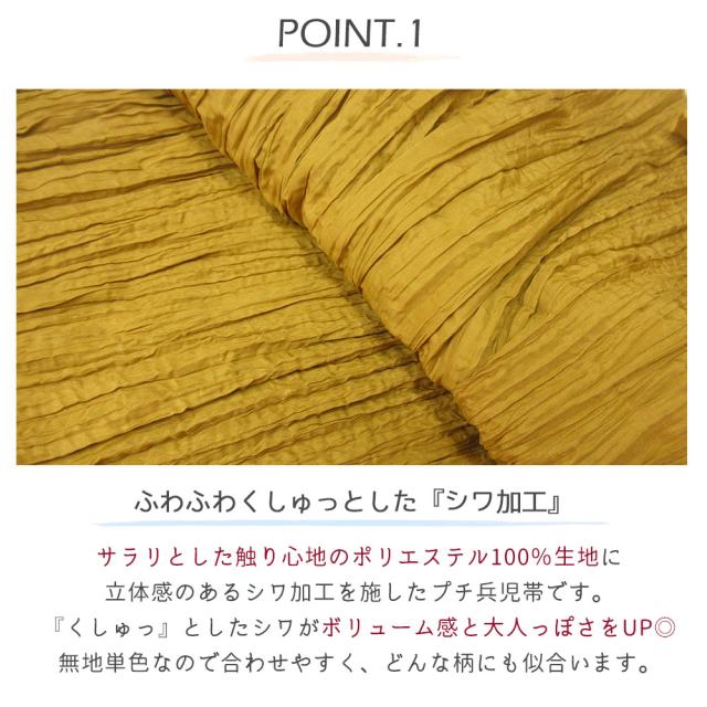 くしゅっとしたシワ加工が可愛い『プチへこ帯』でございます。