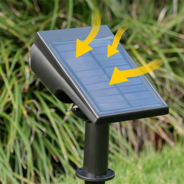 日中は太陽光で6?8時間充電し、夜間に自動点灯、昼間に自動消灯