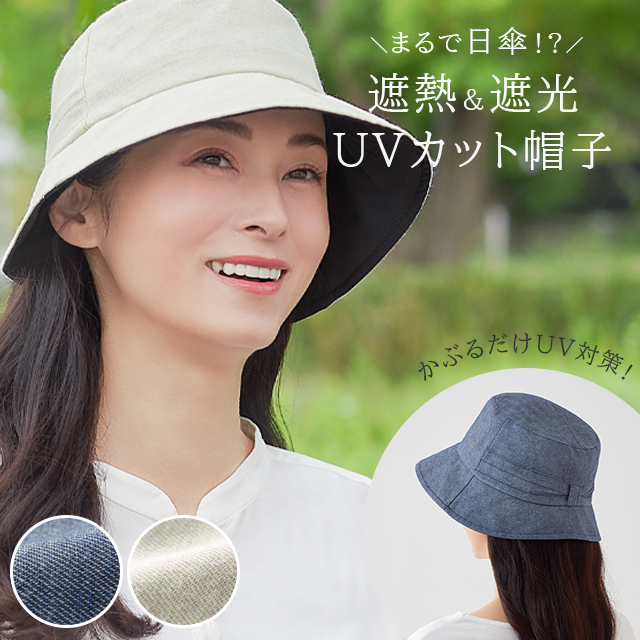 <メール便送料無料>日差しをよける日傘帽子 ネイビー/アイボリー セルヴァン【UVカット 遮熱】