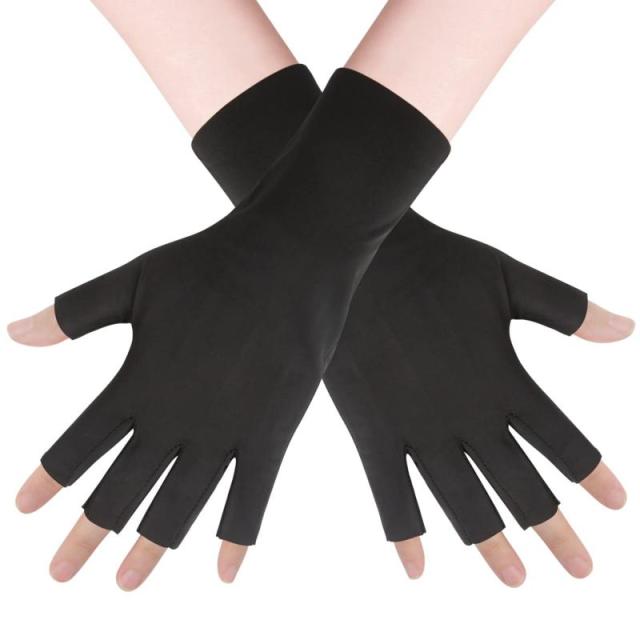 [CINECE] 手袋 uvカット 日焼け防止 レディース 接触冷感 指なし ショート 保湿 手荒れ おやすみ 通勤 自転車用 (ブラック)