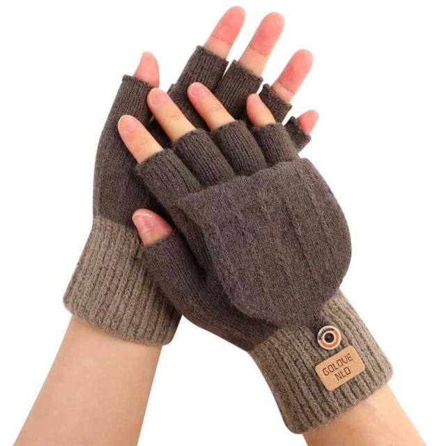 [CINECE] 手袋 レディース 防寒 ニット ミトン カバー 指なし 2WAY グローブ 厚手 暖かい 半指 冬 プレゼントかわいい 通勤 通学 自転車 (濃い茶色)