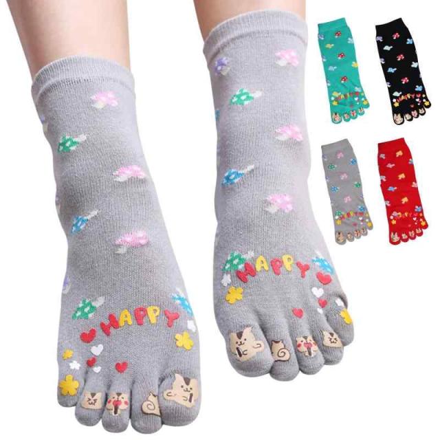 [MgDa] 5本指ソックス レディース 脱げにくい 5本指靴下 通気防臭 フリーサイズ (ハッピーリス/4色4足セット)