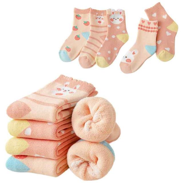 [Mskikefly] キッズ 靴下 子供 5足セット カラフル 可愛い くつした 女の子 男の子 ソックス 綿 冬 厚手 冬用 保温防寒 小物 おもしろ立体 刺? 赤ちゃん靴下 出産祝い 柔らか 冷え性対策 室内 通園通学 ギフト (L, ウサギ)