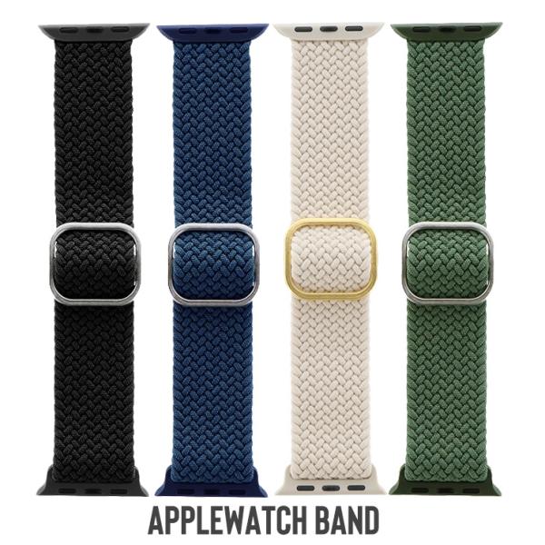 AppleWatch バンド ベルト ストレッチ ナイロン 41 40 38 mm 対応 交換用 ブラック ネイビー グリーン エクリュ